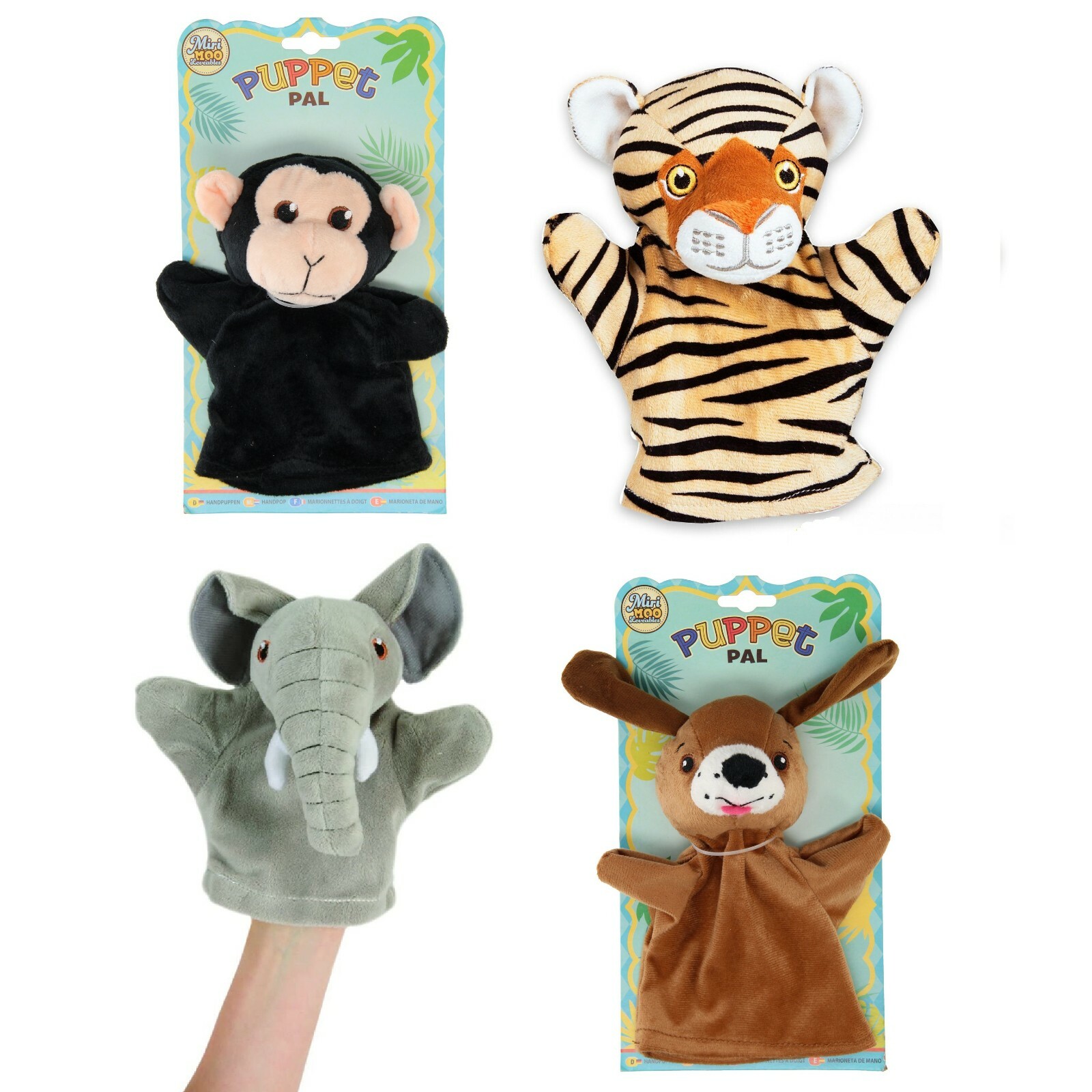 Hand Puppets Set Of 4 Animal Dog Tiger Monkey Elephant Soft Puppet Childrens Toy Ebay